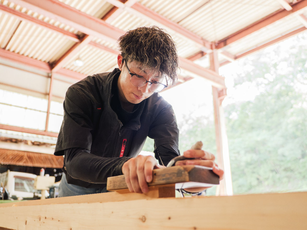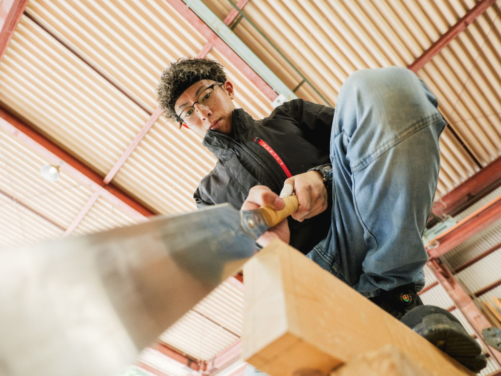 木材を加工して、建物の骨組みから内装までを手がけます。自分の手で形ができあがる達成感を味わえる、“ものづくりの中心”となる仕事です。