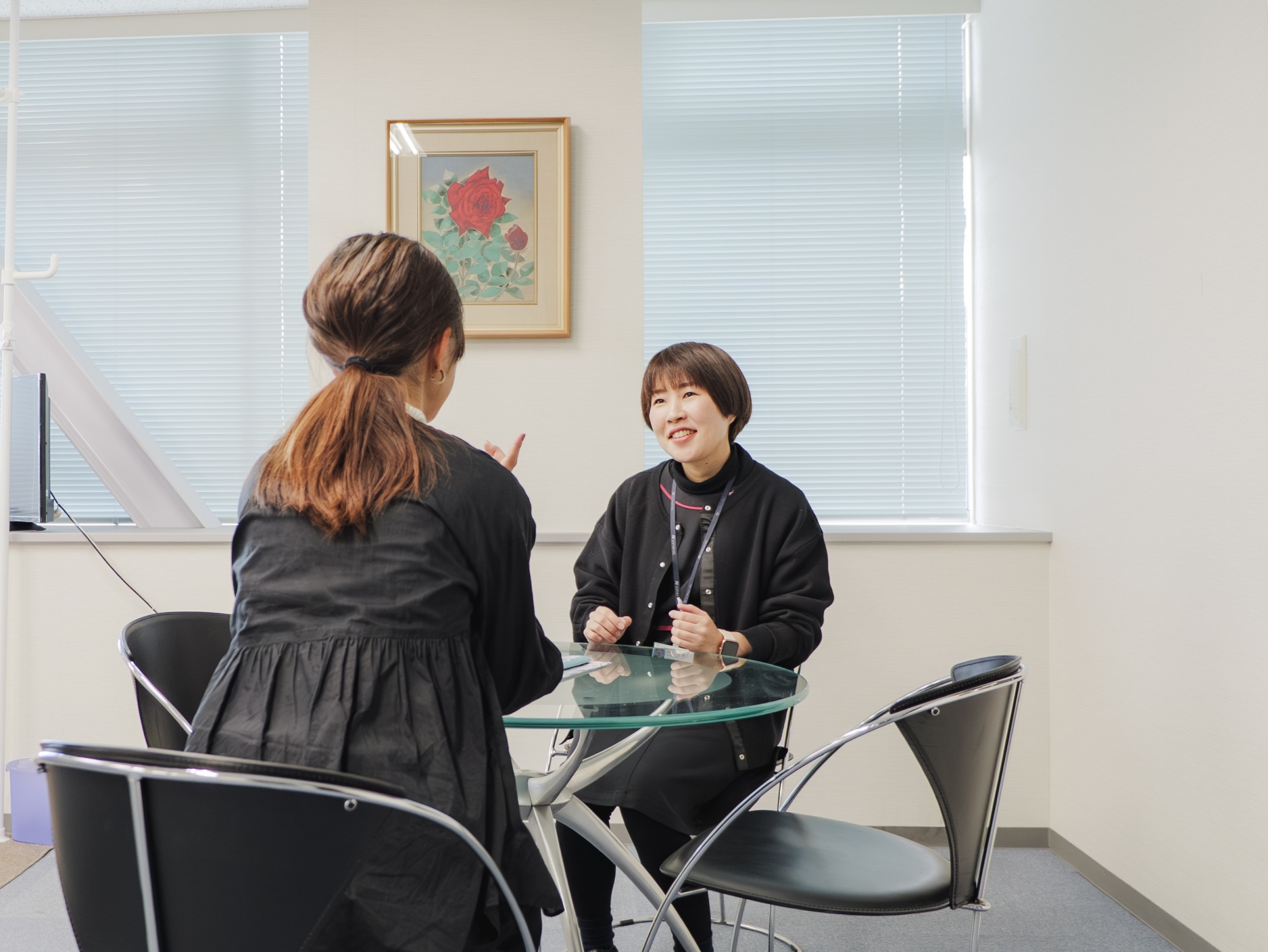 社内は落ち着いた雰囲気で、分からないことがあれば気軽に相談できる環境です。チームで仕事を進めることが多く、周囲と協力しながら安心して取り組めます。