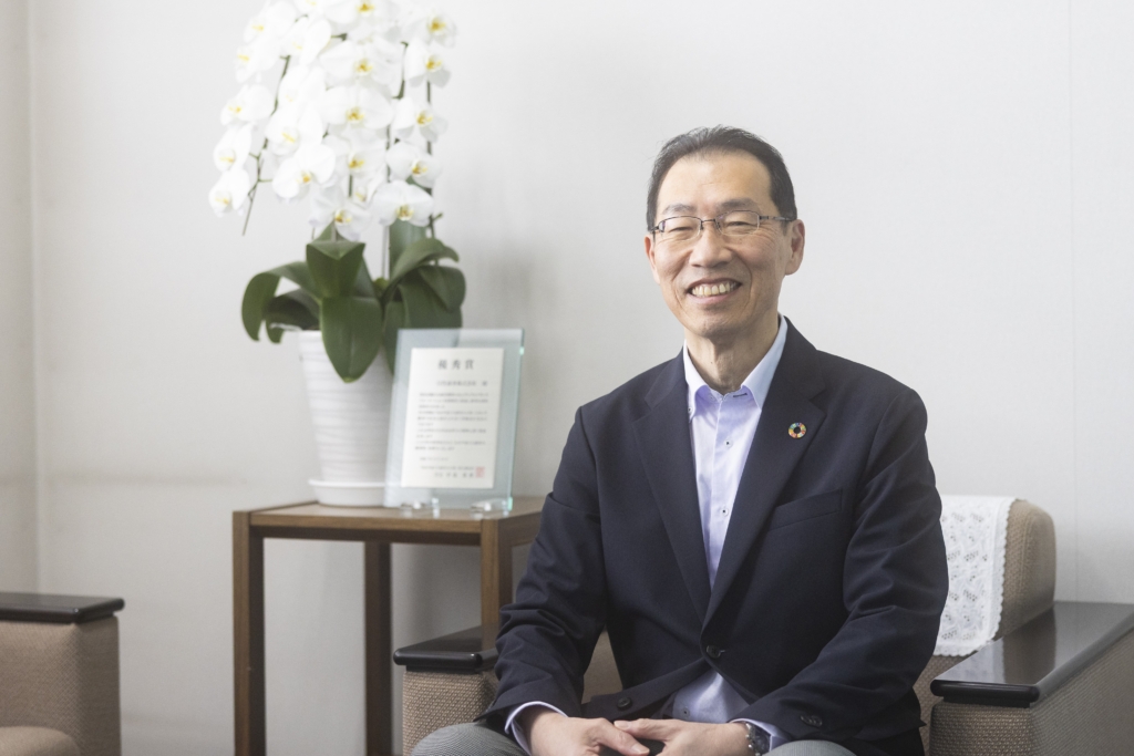 私が日笠商事に入社したのは2022年。大手企業や海外での経験を経て、この地域に根ざした企業で挑戦をしたいと考えたことがきっかけでした。現在は、DXや業務改善を自社でも実践し、その経験をお客様への提案につなげる「言行一致の会社づくり」に取り組んでいます。