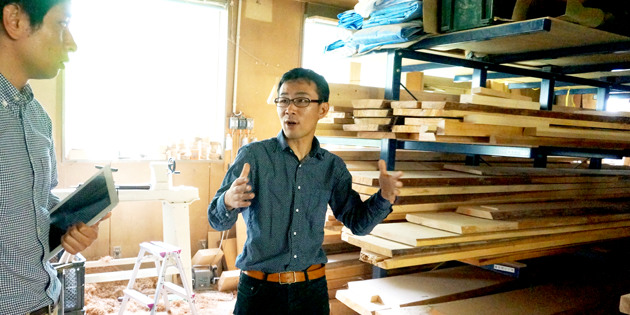 なんかすごい夢があるじゃないですか?家具をつくるときれいな風景ができて、お客さんも喜んでくれるって。ここ西粟倉村でやりたいなと思いました。その日に牧さんに西粟倉に来たいことをつたえ、次の日に前の会社に辞表をだしました。 |
