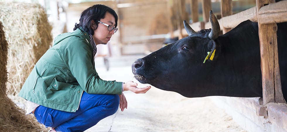 はい、“畜産”です。一番大きな括りでいうと“農業”ですけど、農業ってすごく広くて、それこそ食べ物でいうとお米から部屋を彩る花まであります。例えば他にも林業なども農業の一部になりますし、すごく広いんですよね。さらに農業の中を細分化していくと、本当に大規模から小さい農家さんや、自然栽培から大量作物までいろいろあります。 |