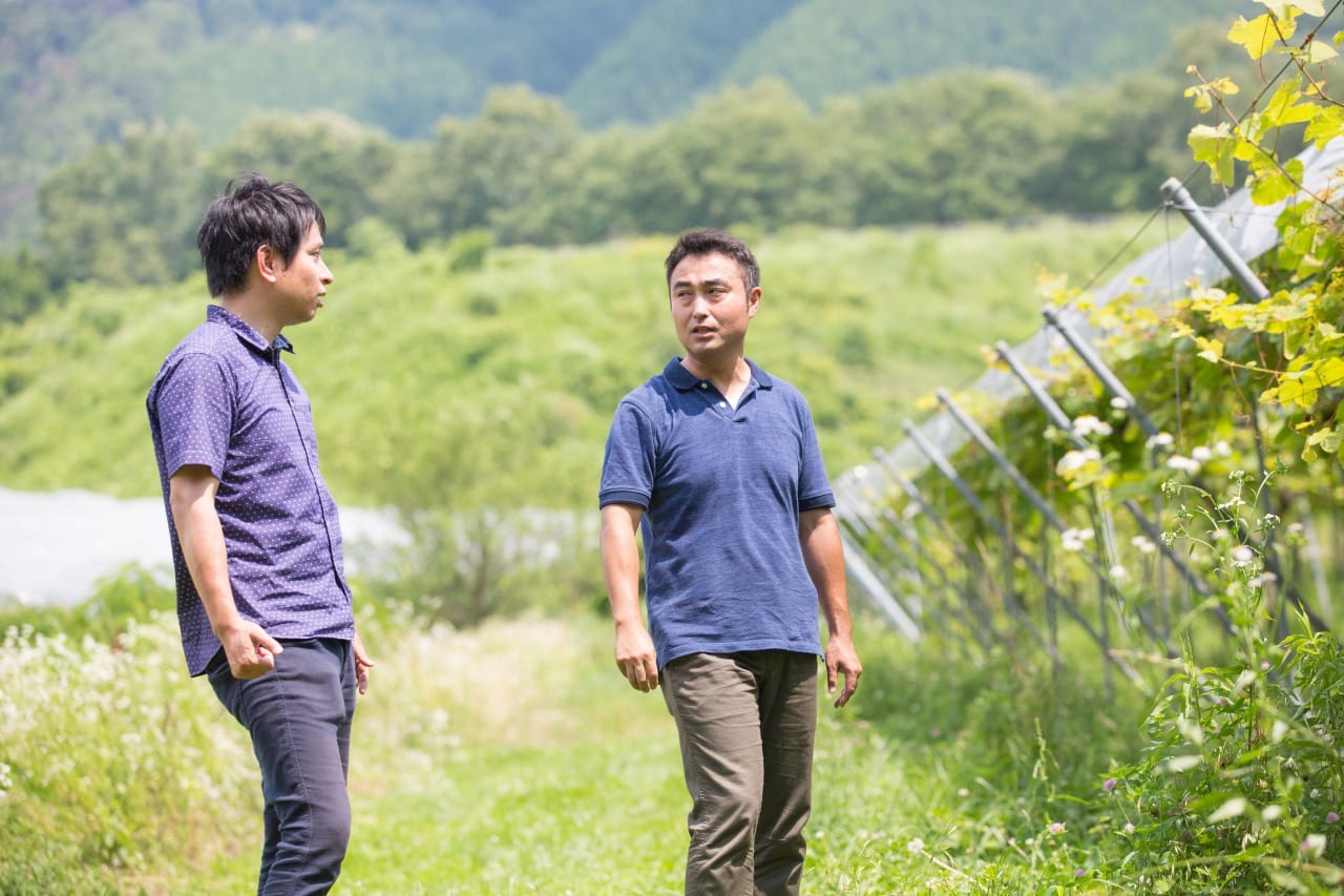 自分自身、新たな事業にチャレンジしたいなというのも、もちろんありました。そして、全く知らない人たちが働いていたわけじゃないので、彼らの雇用を守りたい、守らなければなというのもありました。 でも、一番はこの畑をそのまま山へ戻すのって・・・せっかく自分たちで耕して木を植えたのに、そのまま森に返すのって何かすごいもったいないし、それでいいのかなというふうに思って、調べていくうちに、チャレンジする価値はあるかなと思いました。 本当にいいものはできていたので、まずは生食ブドウの売り方を変えて、ブランドをつくっていきました。そしてある時ここはワインに向くというのがわかってきました。 生ブドウというのは短期間でしか売れないですし、それが年によってはダメになって、1年間が飛んでしまうこともあります。やっぱりワインで加工することによって、長く生産活動や販売活動ができるというのはメリットでもあったし、ビジネス的にもメリットがあります。 あとやっぱりワインつくるなんて、なかなかできる機会ないじゃないですか!?やっぱり面白いと思ったし、すごいロマンのあるというか、夢のあることだと思いました。本当は厳しいですよ、農業なんですごく厳しくて、そんなボロ儲けするような事業ではないんですけども、やっていて楽しそうだなと率直に思ったんです。 |