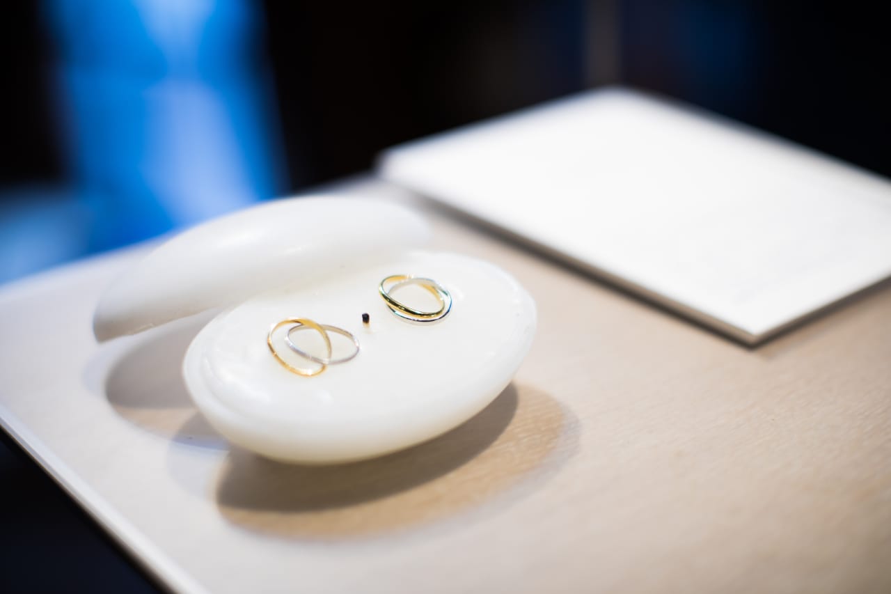そうですね。それが事業の軸です。一般的には、ショーケースの中にずらっと並んでいる指輪を見ていただいて1時間~2時間程で購入するものです。 僕の場合は、極力指輪を見ず、指輪以外の話をしながら指輪をつくるようにしています。 指輪は、単なる装飾品ではなく、“心のよりどころ”になるアイテム。だから2人で宿泊するタイミングで、「結婚指輪について考える時間」をつくるんです。僕は「なぜ結婚指輪が必要ですか?」と聞くんです。僕が「なぜアントワープに来たの?」と教授に聞かれたように。「なぜだか考えたこともない、分からない」という方が多いんです。だけど、そこから全てが始まると思うんですよ。その答えが2人から出てきたら、実は指輪って8割ぐらいは出来ているんですよね。 |