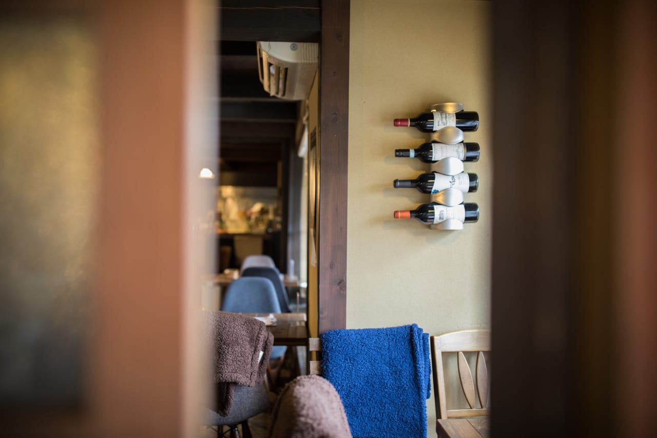 基本的には内装は大きな触り方をしていなくて、しつらえものを換えたんです。例えば照明であったりとか、いすやテーブルとかを換えただけで、実際大きな調理器具も換えていないですし、大きな内装の変更もせずに、そのままでやっています。 |