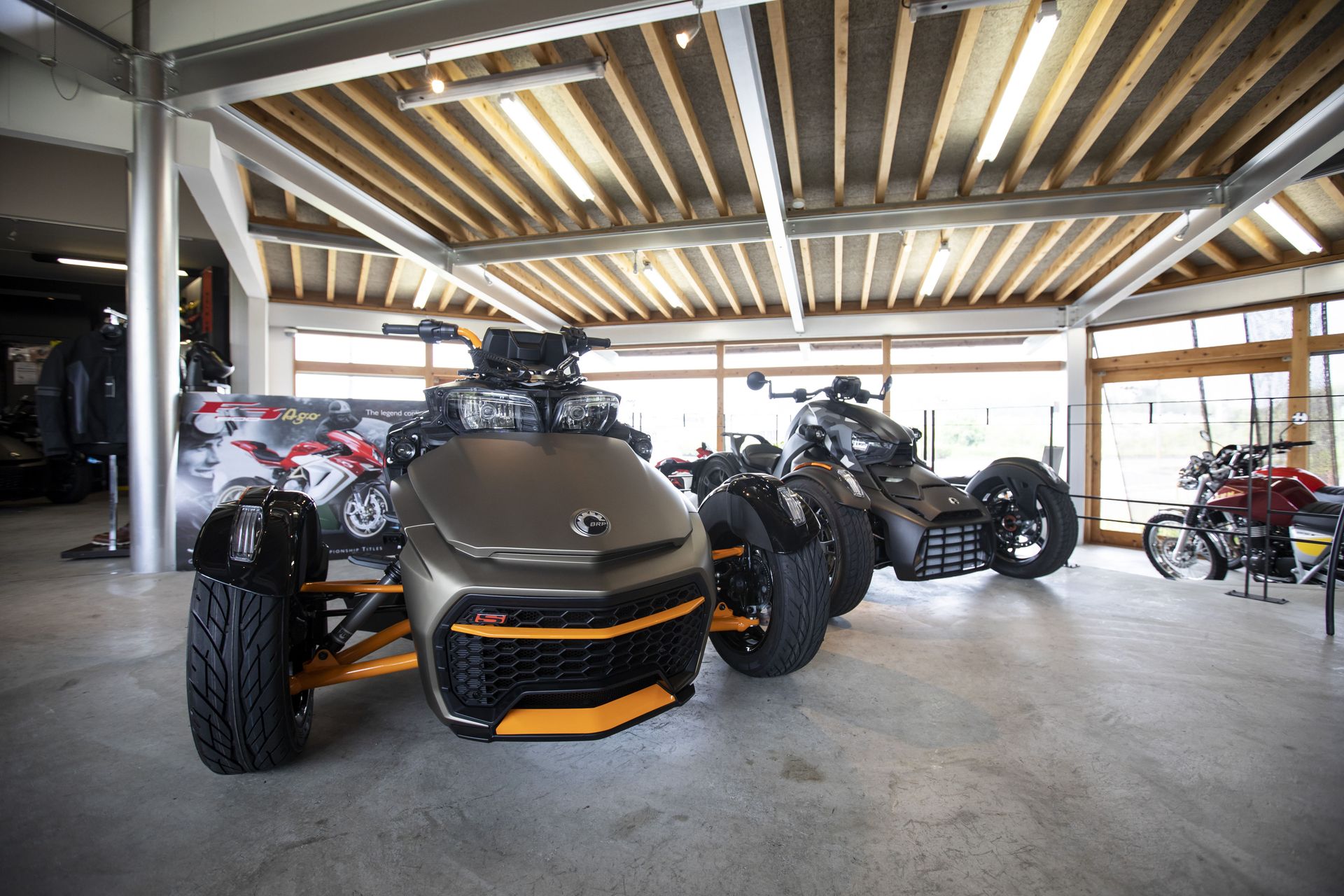| パドック店内に並べられたBRPのトライク(三輪バイク) | |