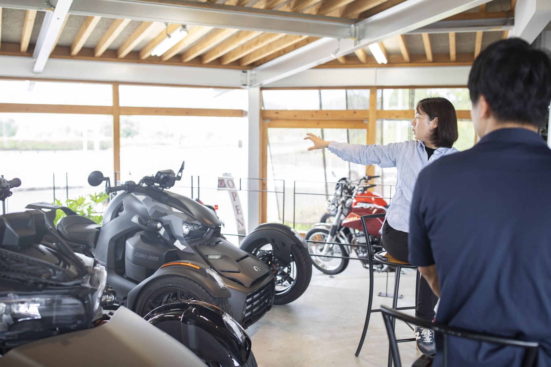 ⼀番遠いところは九州で、3 年前は東京からも来られました。2014年に販売が⽇本でスタートして、最初の約 1 年ほどで BRP 社のトライクは 100 台を超える台数を販売させていただきました。 |