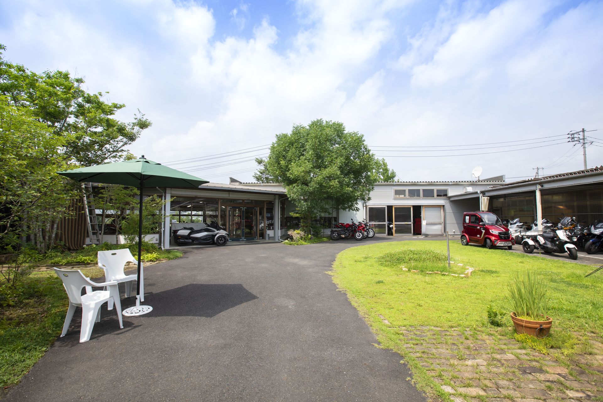 遠くから来られたお客様が、時々「どうして津山にあるの?」と言われるんですよ。もっと岡山市など南に出て、同じような店舗を作ったらよかったのにとも言われます。でも津山だからこれができたと思っているんですよ。 高速道路の中国自動車道も近いということもありますし、あと私と、岡本(創業者であり、現在は会長)とか、AKOさん(アコさん。創業から会社を支えてきた専務。)もそう考えているのですが、ヨーロッパとかアメリカに行くと、バイク屋さんは、もちろん街中にもあるんですけど、郊外に大きな店舗があってというところが多いんですね。それはなぜかというと、やっぱり乗り物だから、混雑しやすい街の中をくねくね行ってたどりつくというより、交通量少なく気持ちよく目的地に来て、帰っていけるロケーションが多いんです。 今では、幹線道路沿いではなくても、「パドックさん“に”来たかったんです」、「ここに一度来てみたかったんです」と言っていただけるようになってきました。 |