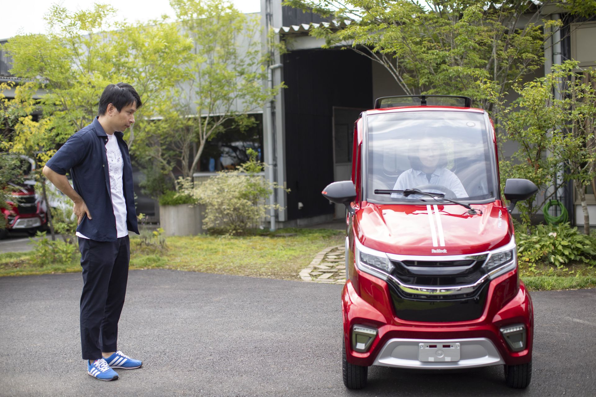 スピード感が早いなぁという印象でした。また、その間に電気⾃動⾞に対するいろんな政府の⽅針だったりとか、エコが良いという価値観だったりも日本国内で増してきて。ただ、本格的な⽇産リーフとの電気自動車になると、パワーもあるし、何百キロも走れますがすごく価格が⾼いじゃないですか。「e-mo(イーモ)」は電気⾃動⾞ではあるのですが、あえて超小型EVミニカーなんです。50 ㏄原付と同じ位とらえていただければと思います。税金も50㏄原付と同じですし、車庫証明いらないんですよ。 ニッチな市場にはなりますが、ちょっと近場までなら⾏くなら「e-mo(イーモ)」というところから始めていただいて、電動をより身近に感じていただきたいと思っています。 |
