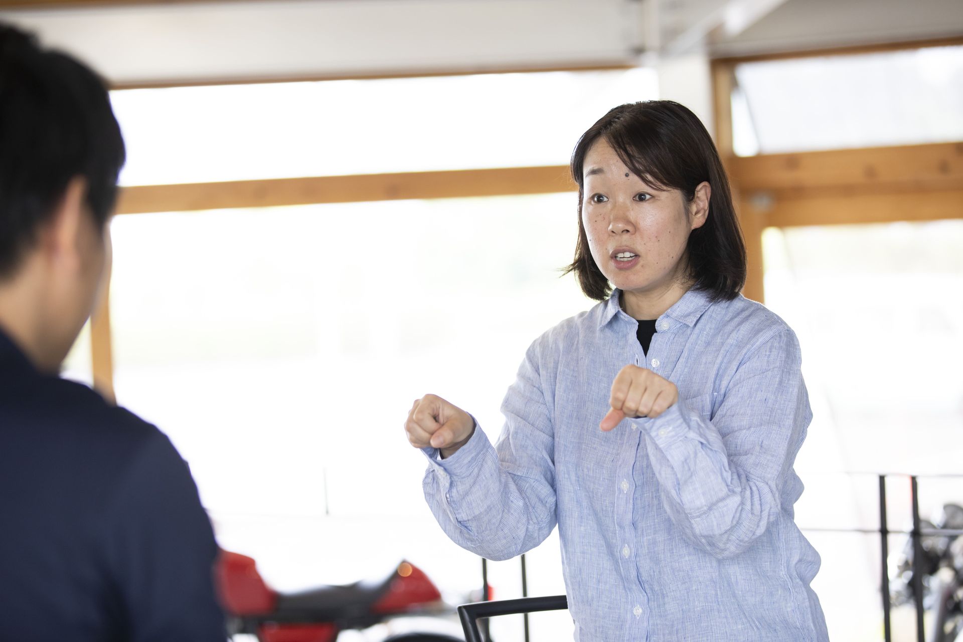 そうですね。お客さんがそこのパドックの⼊り⼝ゲートから⼊ってくるとき、しかめっ⾯した⽅とか、そういう⽅っていらっしゃらないんですよね。皆さんすごく興味深い顔で⼊ってこられたり、「今度ここにツーリングに⾏くんだよ」って、すごくいい顔で話しながら⼊ってきてくださる⽅が本当に多いんです。お客様の笑顔が沢山みれる、そういう職場って、実は少ないと思うんですよ。お客さんがいつもにこにこして、そう⾔うところに⾃分がいるというのは、すごく恵まれていると感じています。大好きなこの会社を残していきたい、新しい仲間が増えたら、楽しく⼀緒にやっていきたいと、考えるようになりました。 ⽗の⽅で世代交代を考えていたタイミングと、こっちが「やりたい!」という気持ちがちょうど重なった時期だったので、お互いが元気なうちに、世代交代をしようという形で、去年(2019 年)の 10 ⽉に世代交代ということで事業承継させていただきました。 |
