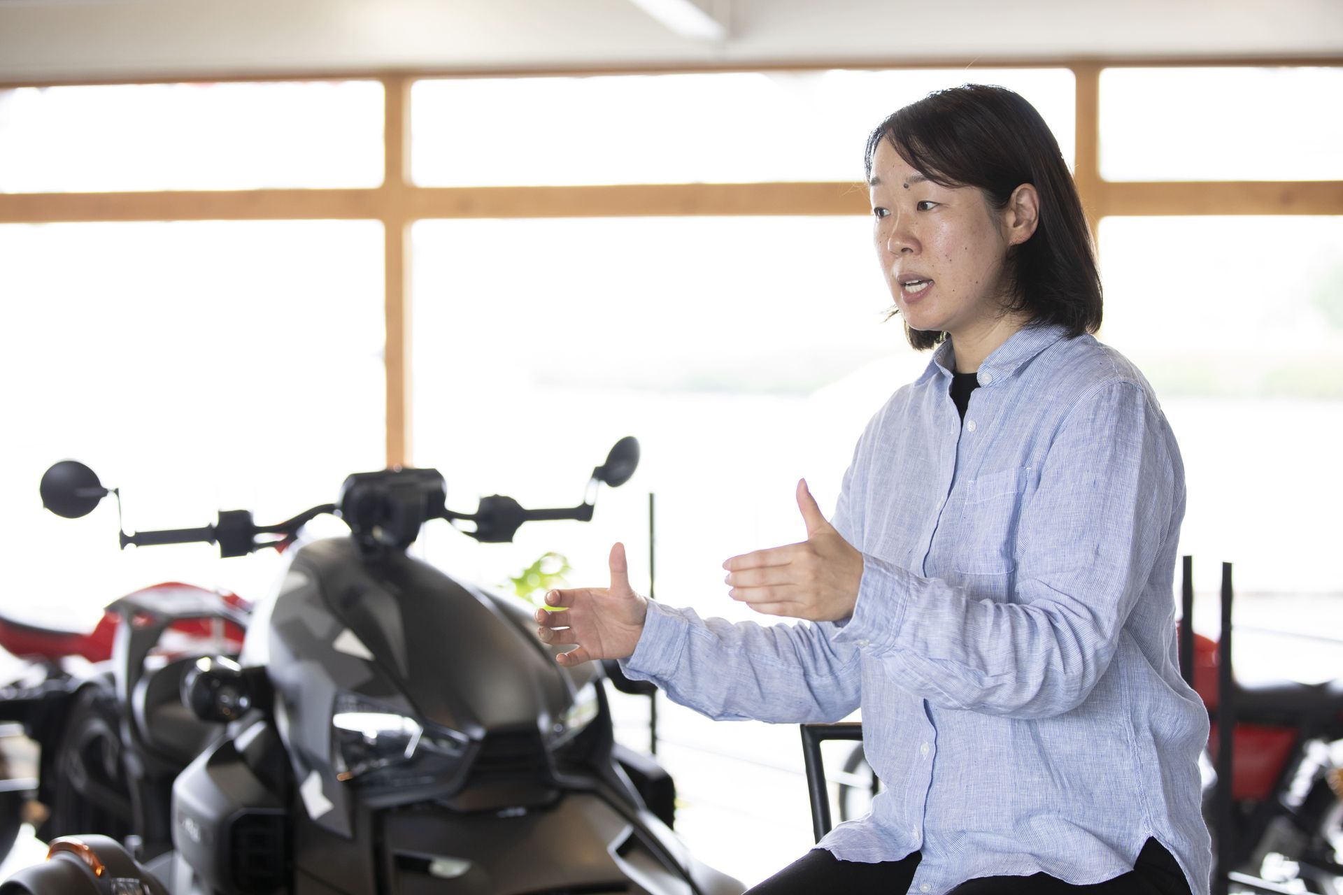 そうですね。「e-mo(イーモ)」については、以前より会長と私で「これから電気の時代ってやってくるよね」という話をしていました。発売する数年前に、海外のメーカから「こんな商品があるんだよね」とお話しを頂いた時に、創業者の岡本が「このままでは、⽇本では絶対売れないな・・」と⾔う感じを受けたそうで。 そこでそのメーカーさんと、「僕だったら、ここをこういうふうに変えて、スタイルこういうふうにしていけば、⽇本のマーケットでも受け⼊れてもらえるものに仕上がると思うよ!」という話をしたそうなんです。そうしたらそのメーカーさんが「なるほど。その視点はなかった」と。 そこで⾃分たちの⾞両がアップグレードするタイミングであり、その視点を取り⼊れて |