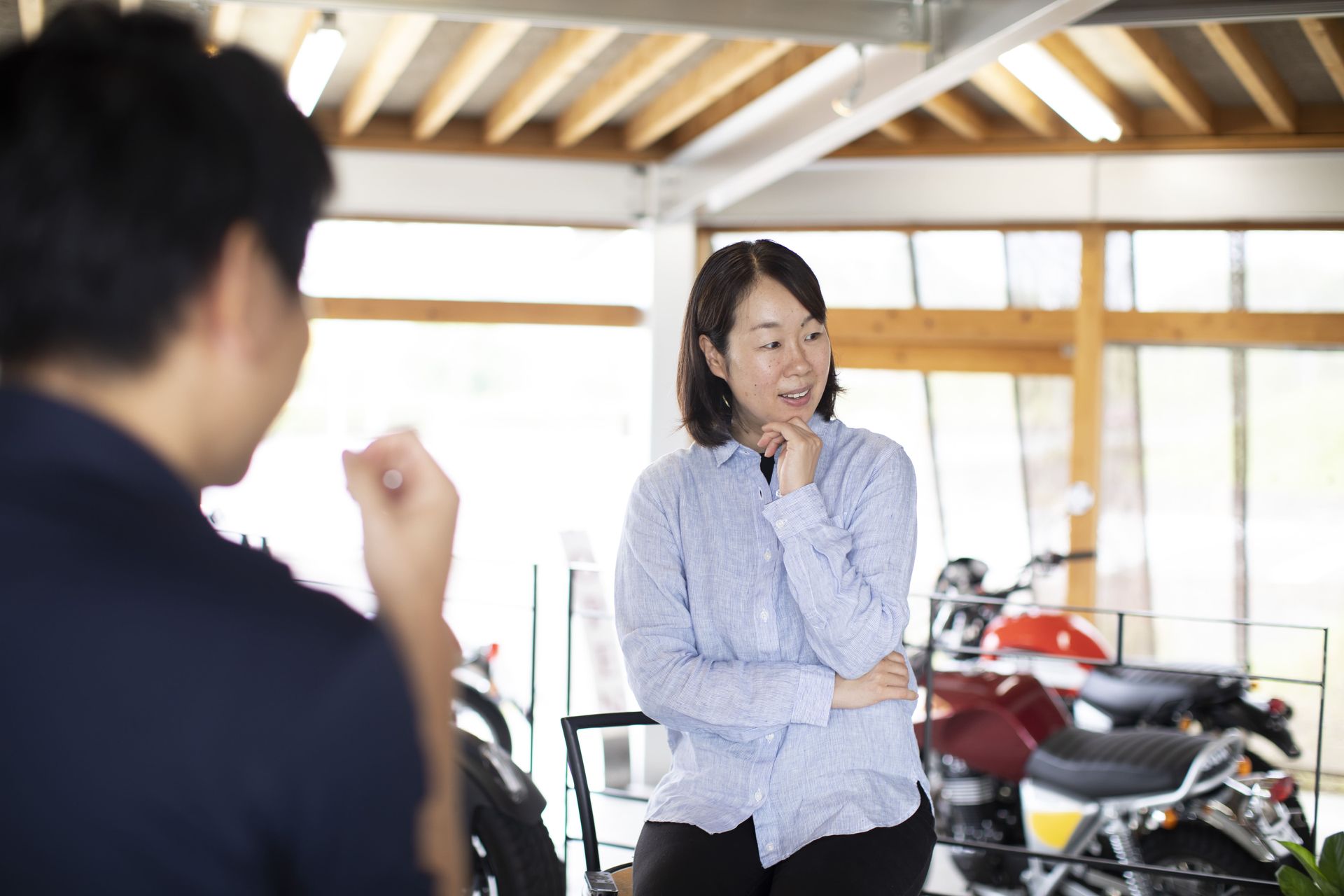 お話を聞かせていただきありがとうございました!パドックさんの事業はバイク事業を中⼼として、企業課題を解決したり、ライフスタイルを豊かにしたりと、様々な価値の軸があり、お聞きするだけでとても興味深いものでした。また、海外経験を活かし、世界をスコープに⼊れながら、津⼭市で事業されていく、岡本さんの話にはとても刺激をいただきました。岡本さんは、海外から岡⼭県北に U ターンで、これからのモビリティの可能性を新たにつくっていく、かえーる⼈でした。