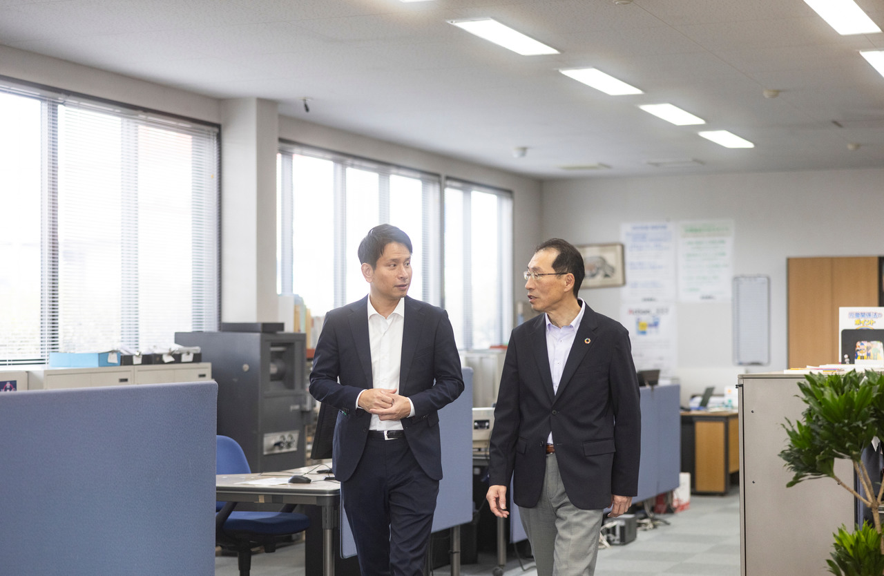 まず、これまで築いてきた「お客様との信頼関係」は、100周年を迎えても変えてはいけないものだと思っています。地元密着で「地域企業の良きビジネスパートナーであり続ける」こと。それが一つ目です。 |