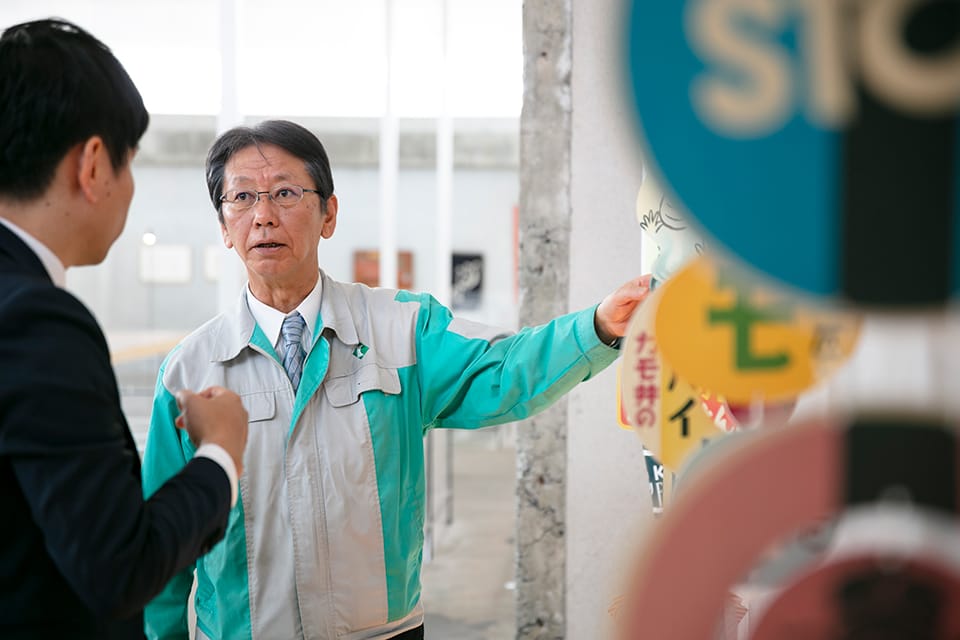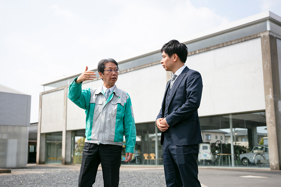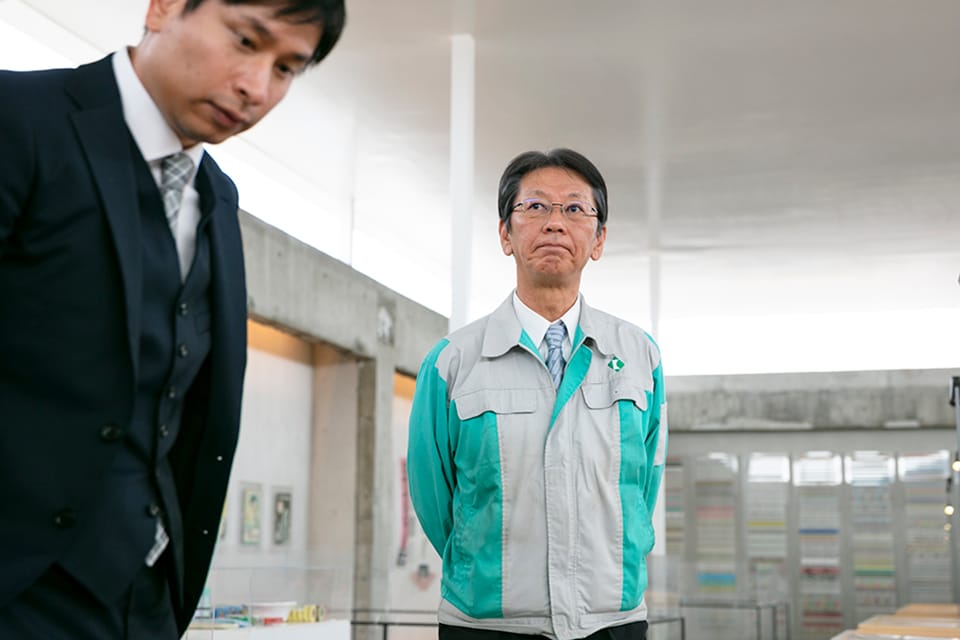 普段、私たち製造業は塀とか壁の内側でものをつくっていますから、営業以外の人は外部との接点が非常に少ないですね。なので実際、我々から全国にいるお客さんのもとに回らなくても、全国からお客さんが来てくださる。そして社員とお客さんとが接触できるというのは、ファクトリーツアーを開催する意味として大きいですね。 |