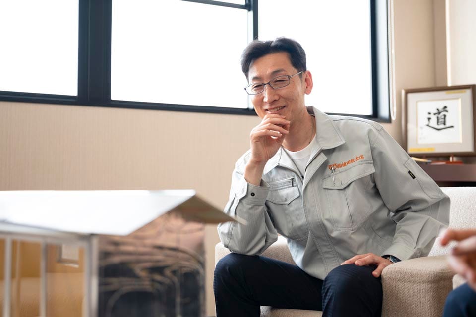 正直、植田板金店は専属の営業マンと言える人間はいないんです。実質の営業を担っているのは私ともう一人くらい。うちは技術の仕事なので、よい仕事をすることで工務店さんが知り合いの工務店さんを紹介してくださり、次につながっていき、どんどん仕事量を増やしているイメージです。 |