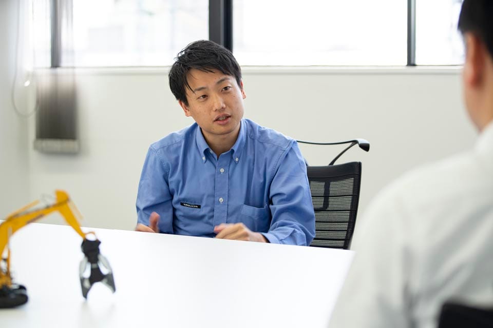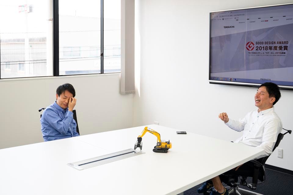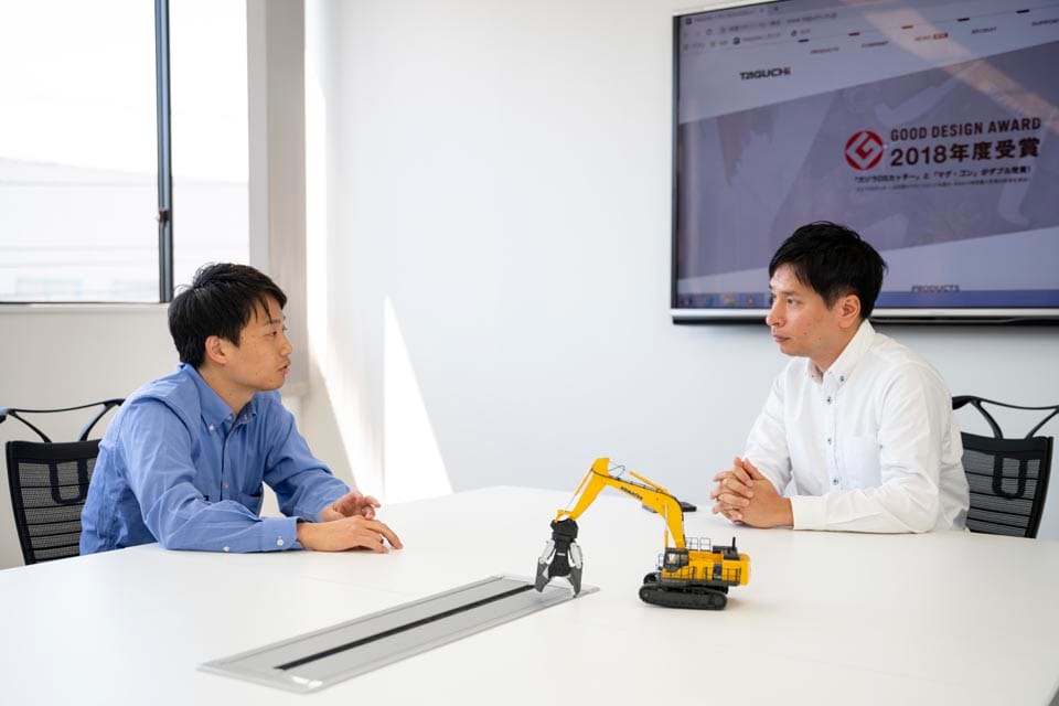 世界進出ですね。世界シェア含め、「とりあえずタグチに聞いてみよう」という存在になることを、アタッチメントで突き詰めていくこと。あとはもう圧倒的に、ここで働いてくれる社員が「ここで働いてよかったな」と思えるような会社づくり・環境づくりをしていくことが、今後、大切かと思いますね。 『働き方改革』が唱えられる中、その制度自体は製造業として厳しい部分も多くあります。でも、その中でもやれることは沢山あると思うんです。しっかり会社が儲けて、社員に還元していきたいなという考えで、うちで働いたら、物・心両面ともに豊かになっていくよ、というのが、若い方たちにしっかりアピールできるようにしたいです。 そのためにも、社内での開発はずっと進めていかないといけないなと思っています。僕らものづくり屋は、アタッチメントが売れ続けるまではずっとアタッチメントの開発をしていきますけど、ニーズがなくなった瞬間につくることをやめざるを得ません。ものづくり屋であり続けるためには変化を恐れず、今まで培った技術を使って、何か違うものを新たにつくっていかねばなりません。 |