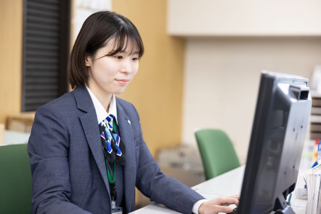 私たちは地域密着型の金融機関として、地域の発展とお客様の生活向上を支えるために様々な金融サービスを提供しています。私たちの使命は、金融を通して地域の発展に貢献することです。窓口では預 金や資産運用の相談、相続に関するアドバイスなどを行い、企業向けには融資の相談を通して信頼関係を築いています。地域の方々に「困ったときはまず相談したい」と思ってもらえることが、仕事の大きなやりがいです。