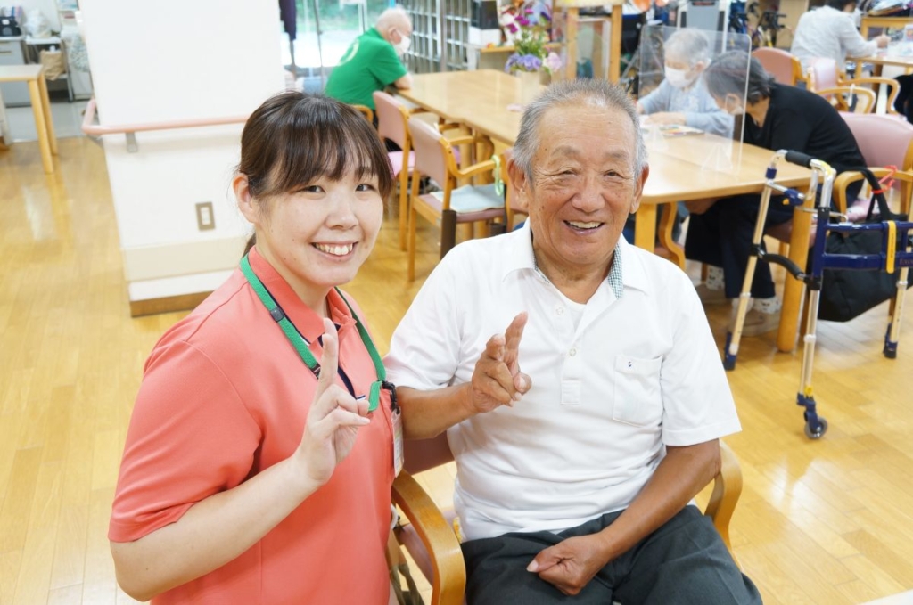 介護の仕事は、利用者さんの状態が常に変わる中で様々なことを想定しながら行動する必要があり、大変な面もありま す。でも、「ありがとう」と言ってもらえるたびに「やってよかっ た」と実感でき、そのたびやりがいを感じます。おじいちゃん・ おばあちゃんが好き、人と関わるのが好き、人の役に立つ仕事をしたい方には、ぜひ挑戦してほしいお仕事です。